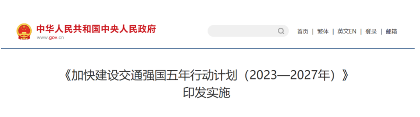 近日,交通运输部、国家铁路局、中国民用航空局、国家邮政局、中国国家铁路集团有限公司联合印发《加快建设交通强国五年行动计划(2023—2027年)》(简称《行动计划》)全文发布!