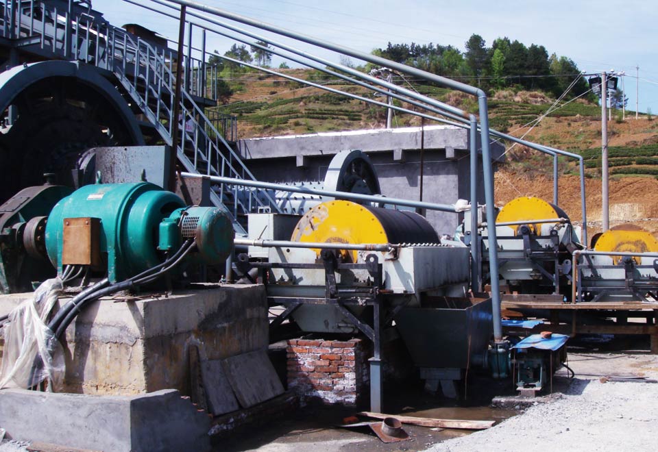 4:经过洗净和分级的矿物经过磁选机,经磁力和机械力将混合料中磁性物质分离,得出精分。