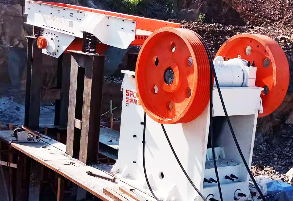 经天然开采的玄武岩首先经过颚式破碎机的初步破碎,经过粗碎的玄武岩经振动给料机及皮带输送机的圆锥破碎机中,进行下一步中细碎。