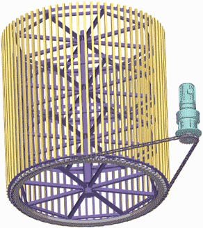 滚筒装置倾斜安装于机架上。电动机经减速机与滚筒装置通过连轴器连接在一起,驱动滚筒装置绕其轴线运动。当物料进入滚筒装置后,由于滚筒装置的倾斜与转动,使筛面上的物料翻转与滚动,使合格物料(筛下产品)经滚筒后端底部的出料口排出,不合格的物料(筛上产品)经滚筒尾部的排料口排出。由于物料在滚筒内的翻转、滚动,使卡在筛孔中的物料可被弹出,防止筛孔堵塞。