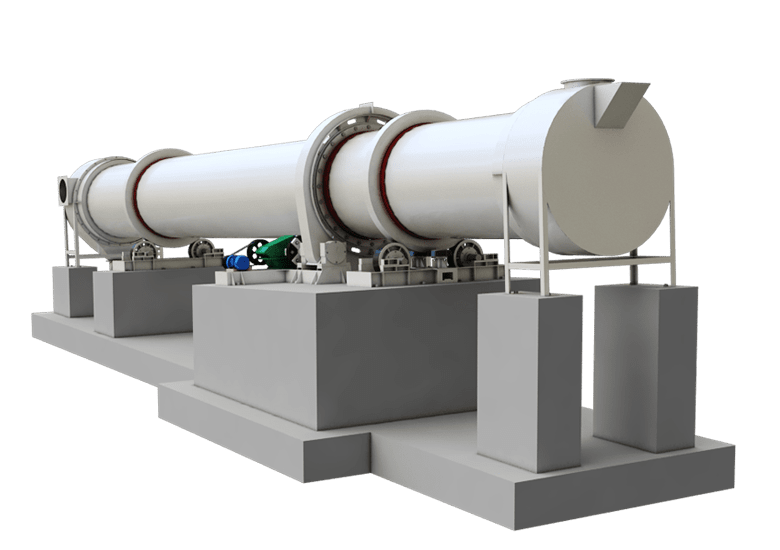 回转烘干机的主体部分主要由筒体、前辊圈、后辊圈、齿轮、挡辊;拖辊、小齿轮、出料部分、扬板、减速机、电机、热风道、进料溜槽、炉体等部分组成。 其进行烘干作业时,在回转烘干机设备底部温度达400℃-800℃状态下,物料由提升机从喂料口喂入,在重力作用下由经过打散,破碎,分散装置均布在回转烘干机内部流动(保证了物料在烘干机内部的热交换效果)。热气体由下部热风炉生成,从下向上运动,与物料相接触,通过热传导,对流,辐射等多种方式将热量传递给物料,从而使物料温度不断升高,水分不断被蒸发,符合水分要求的物料从下部出口卸料,带着水蒸汽的气体由烟囱被风机抽出。