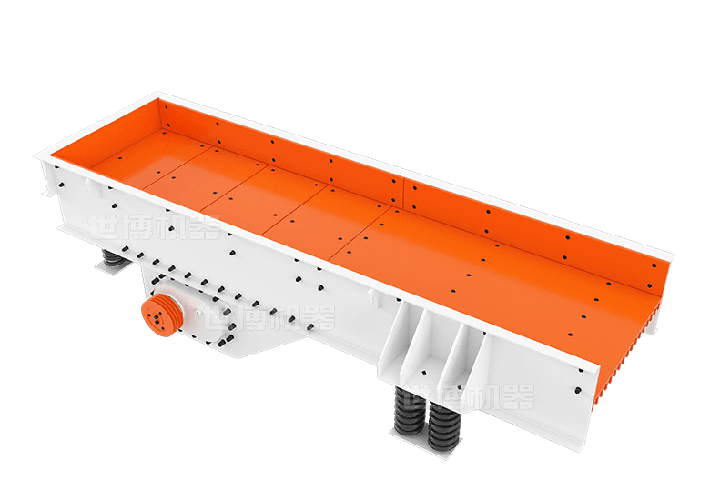 振动给料机又称振动喂料机,在生产流程中是用于把块状、颗粒状及粉状物料从贮料仓库或漏斗中均匀、定时、连续地给到受料装置中去的一种设备。该设备分为钢板结构和篦条结构,钢板结构的给料机多用于砂石生产线,将物料均匀地送入破碎设备;篦条结构的给料机可对物料进行粗筛分,使系统在配制上更经济合理 。 振动给料机采用双偏心轴激振器的结构特点,设备能成承受大块物料下落的冲击,给料能力大, 广泛应用于冶金、煤矿、选矿、建材、化工、磨料等行业,已成为破碎、筛分联合作业中必不可少的设备。